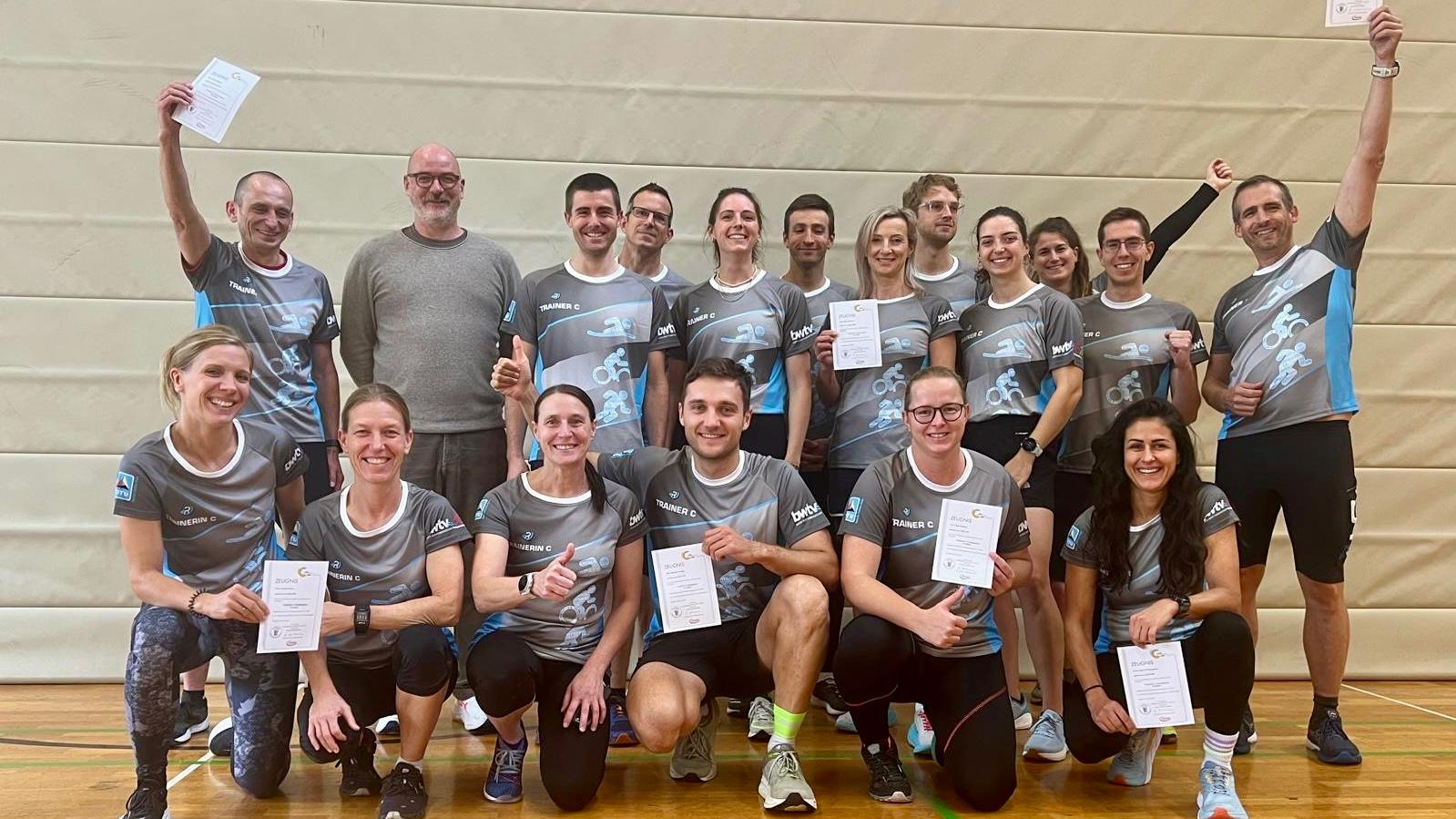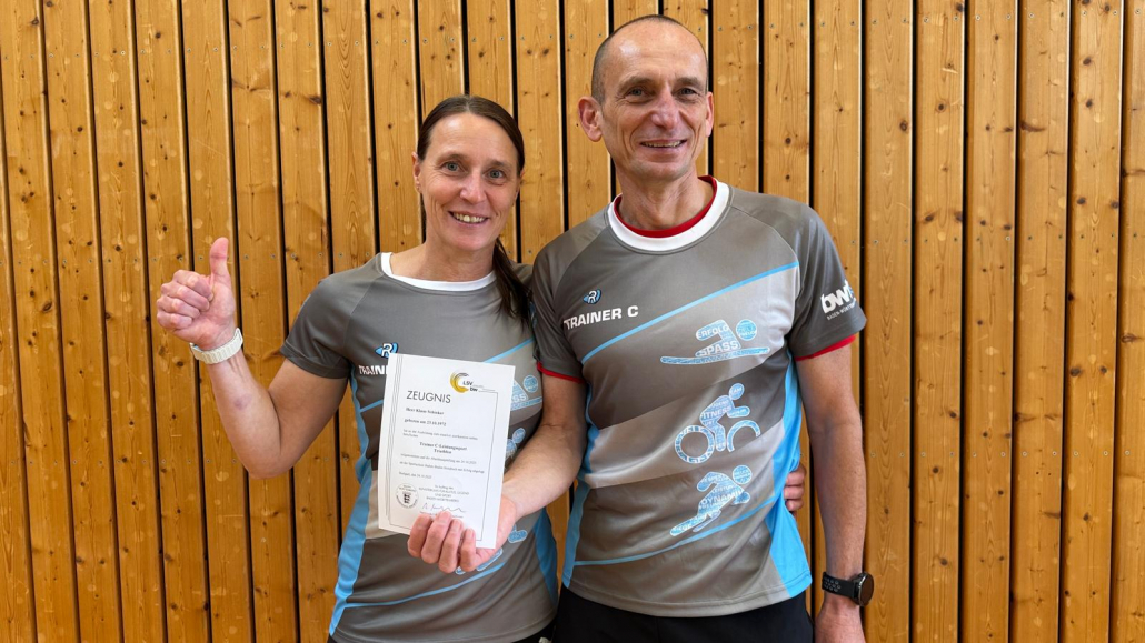 Über ein Jahr von November 2024 bis Ende Oktober 2025 meisterten die beiden den Trainerlehrgang. In der Zeit besuchten sie das Ausbildungszentrum eine Woche für den Grundkurs, eine Woche zum Aufbaukurs und zum Abschluss noch zur Prüfungswoche. Dazwischen hieß es für die zwei viel selbständiges Lernen, Hospitieren bei Thorsten und seiner Triakademie sowie praktisches Üben im Verein durch verschieden Trainingseinsätze, was alle Mitglieder sehr schätzten.